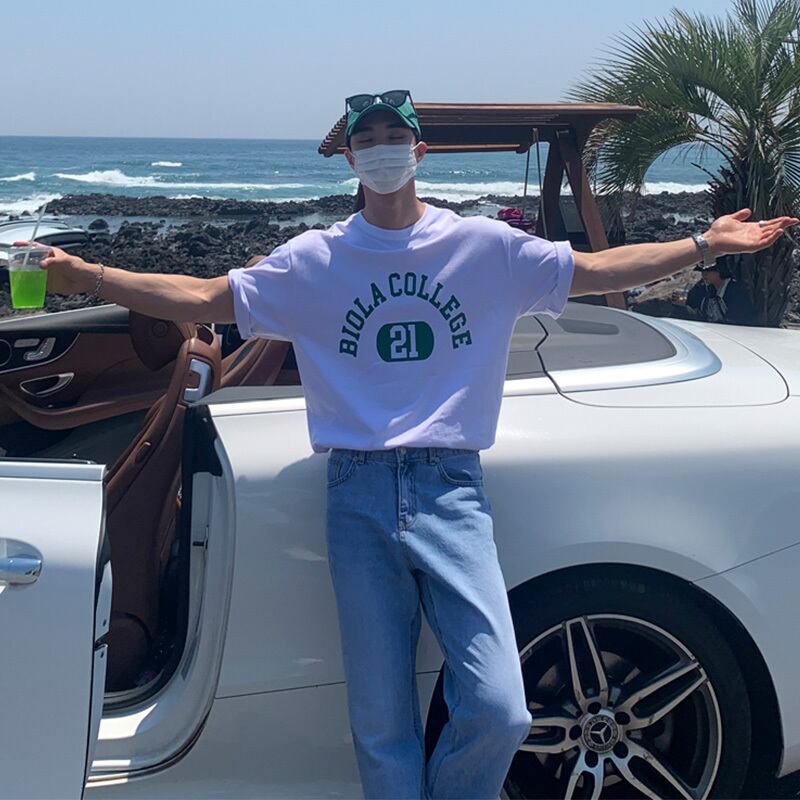 t桖メンズサマートレンド半袖メンズルーズトレンドプリントラウンドネックトップバージョンカジュアルシンプルワイルドTシャツ 夏物 Oネック BLUU13415267616