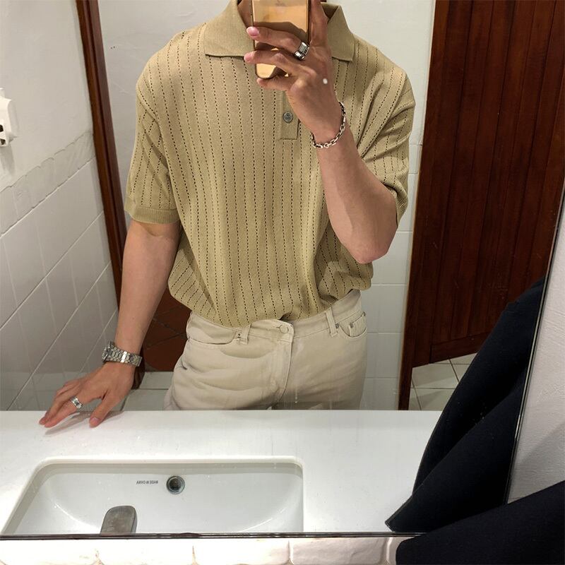 ポロシャツメンズタイドブランド半袖Tシャツバージョンシンプルなハイエンドメンズサマーイーズカジュアルオールマッチニットトップス 夏物 BLUU7872957048