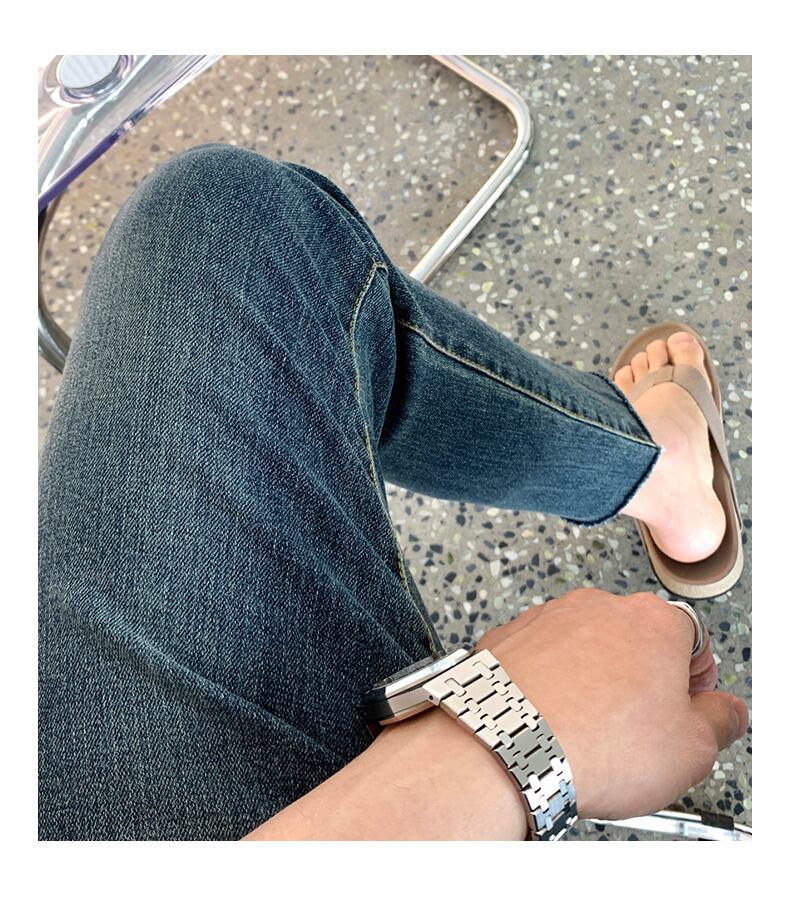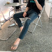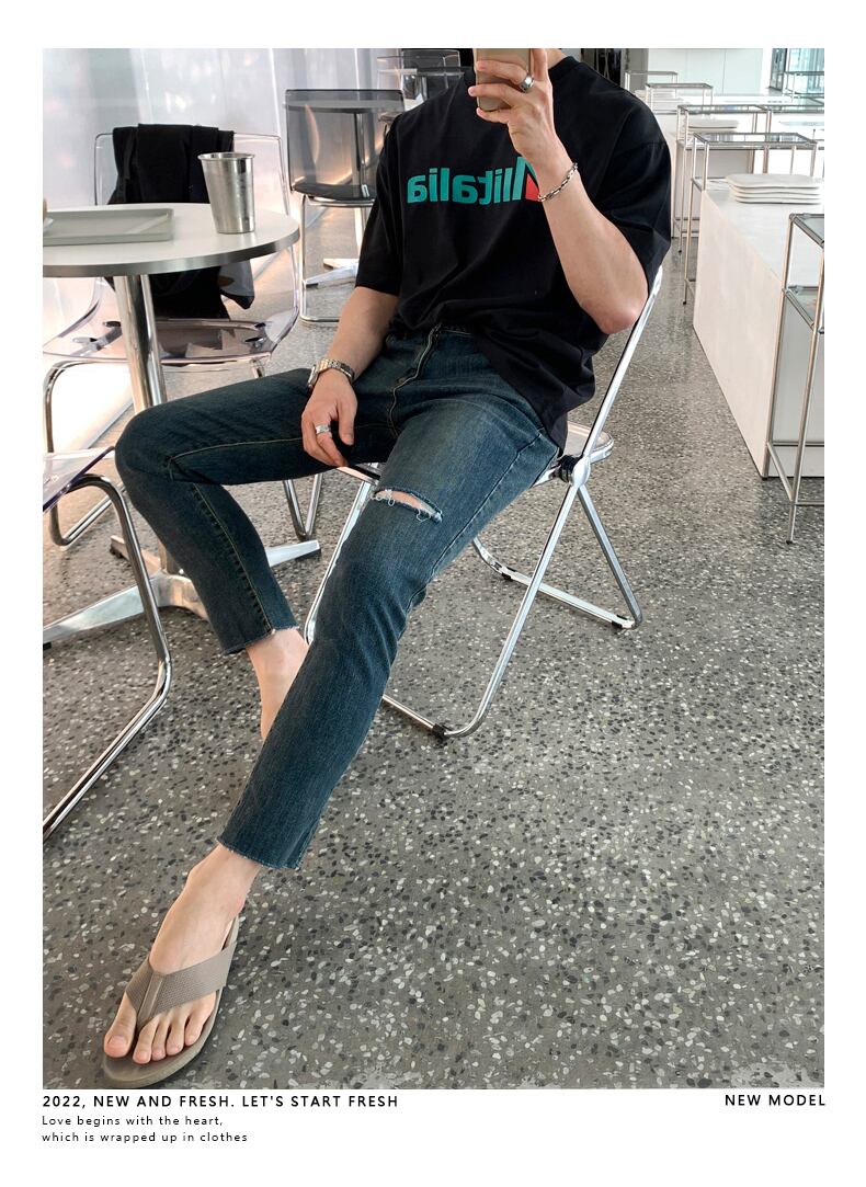 夏の薄手の薄手の破れたジーンズメンズインハイストリートスリムスモールフィート9ポイントパンツタイドブランドカジュアルパンツ サマー 夏物 BLUU91719970310