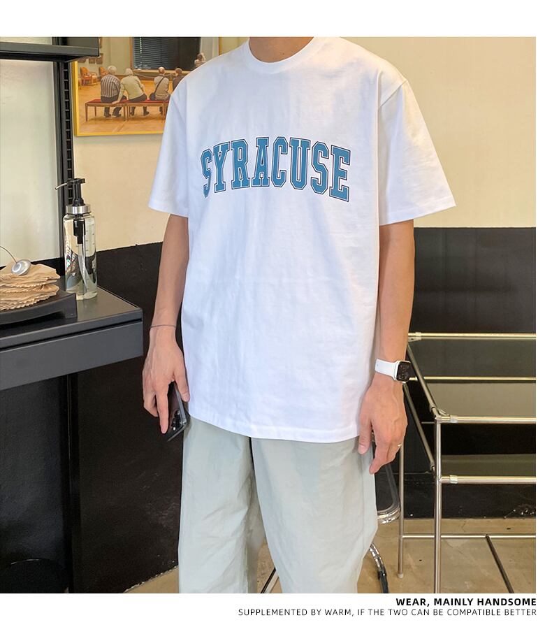 半袖TシャツメンズホワイトサマーバージョンのタイドブランドファッションプリントラウンドネックトップユースインカジュアルシンプルTシャツ 夏物 Oネック BLUU96811327733