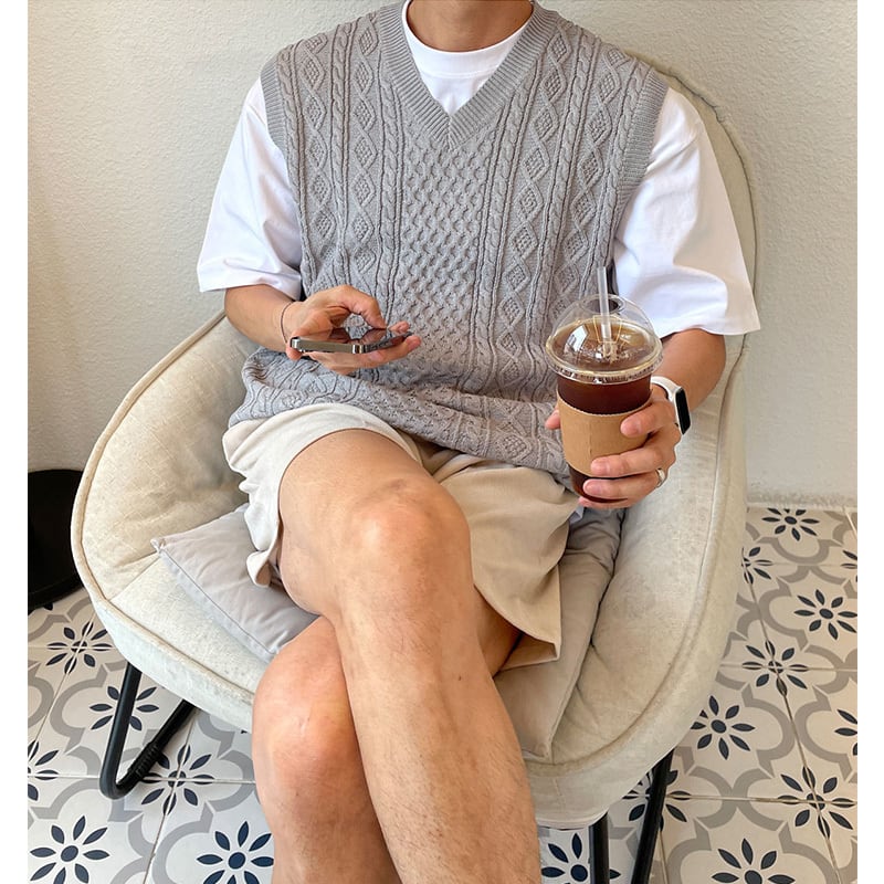 ベストネットレッド人気メンズeseトレンディブランドins怠惰なノースリーブセーターバージョンファッションカジュアル無地ベスト ソリッドカラー BLUU95757468114