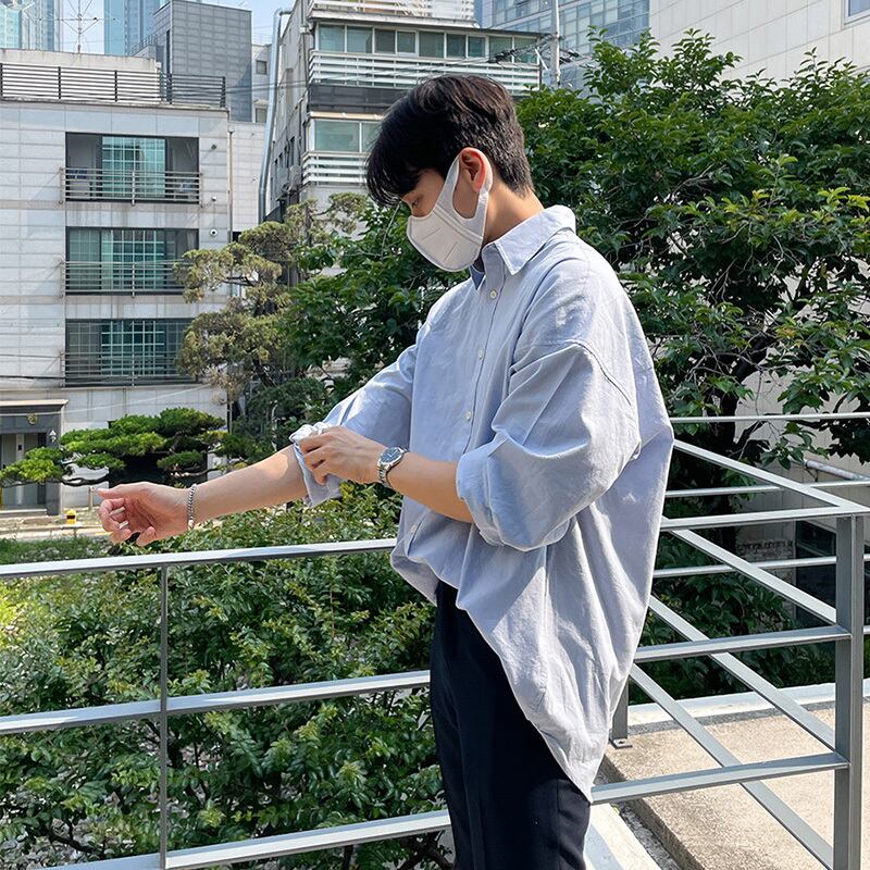 シャツ メンズ 長袖 夏 薄手 万能 ゆったり シンプル 無地 シャツ トップス ロング サマー 夏物 ソリッドカラー BLUU52138655587
