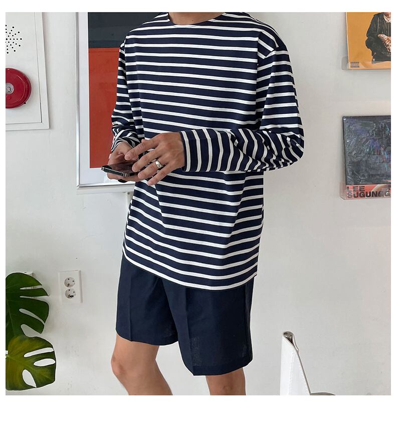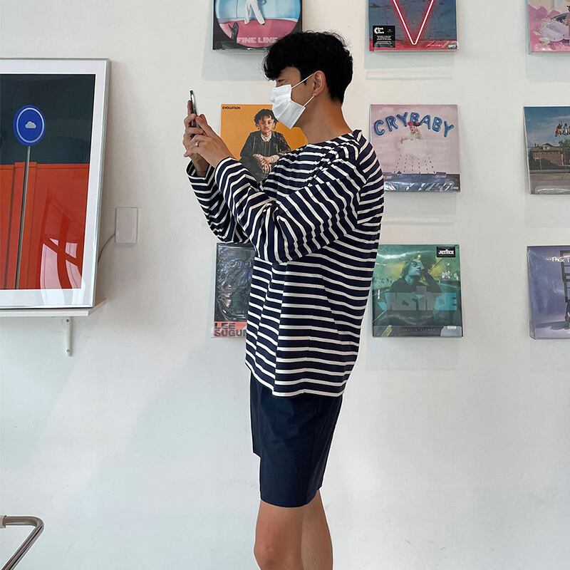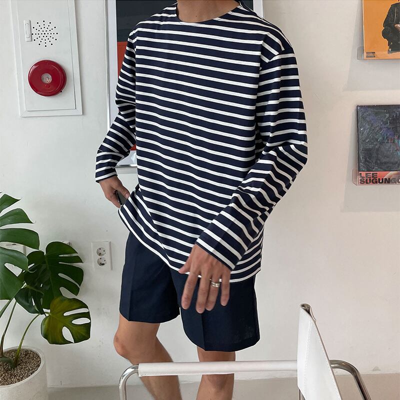メンズ 長袖 Tシャツ ハイストリート インズタイド ニッチデザイン ストライプ トップス バージョン シンプル ゆったり オールマッチ ボトムスシャツ ロング BLUU91221781780