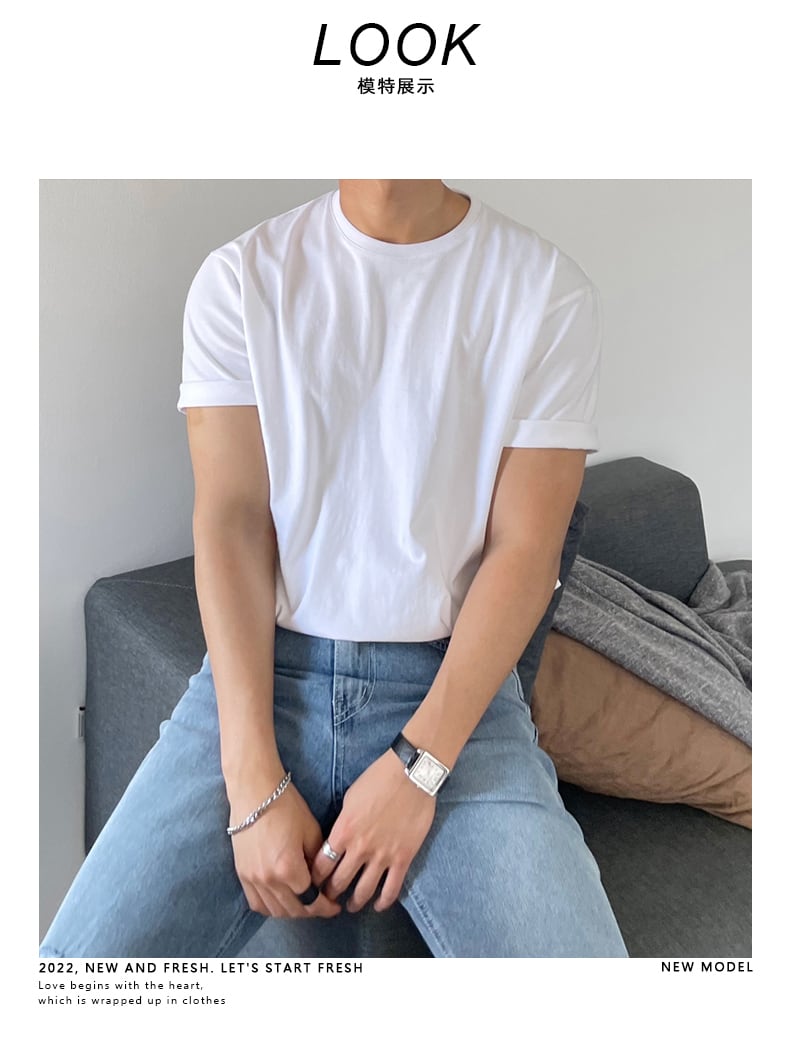 半袖 tシャツ メンズ 白 夏バージョン タイド ブランド カジュアル シンプル 無地 丸首 tシャツ イン ゆったり ファッション トップス ホワイト サマー 夏物 Oネック ソリッドカラー BLUU98950780056