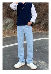 Ruffianハンサムハイエンドジーンズメンズトレンド香港スタイルルーズワイドレッグパンツバージョンのユースストレートレッグルーズオールマッチパンツ BLUU68631657715