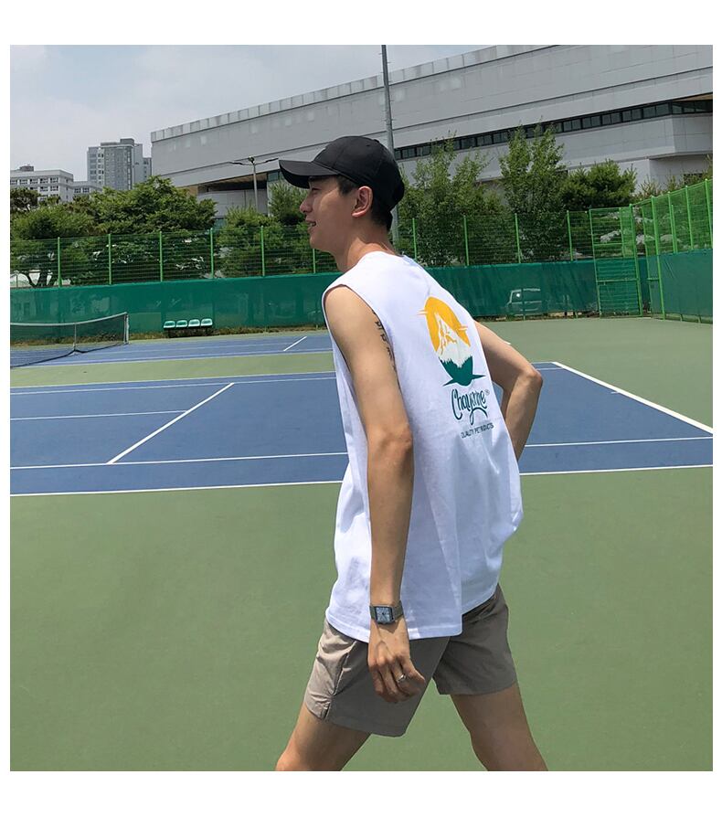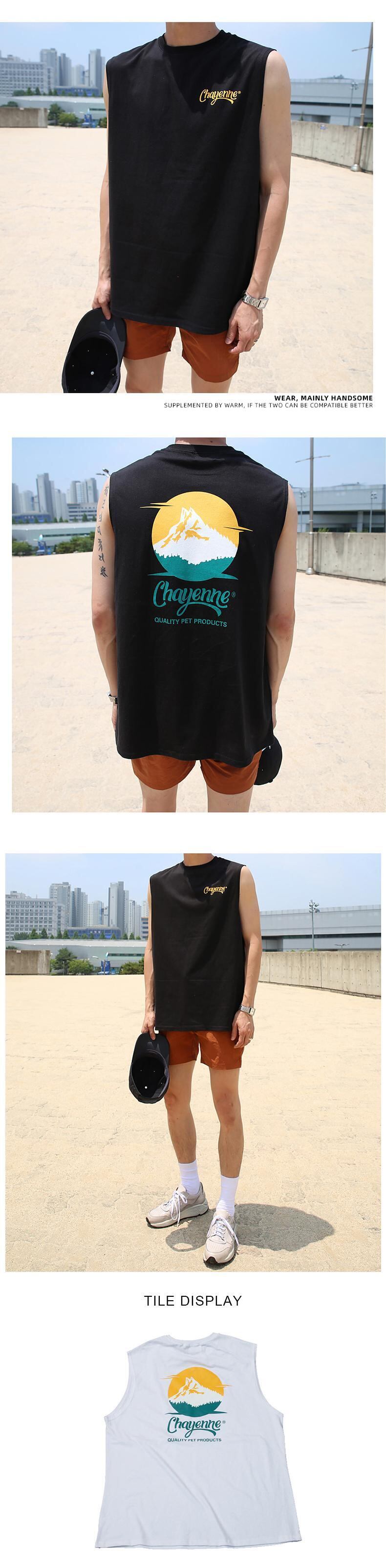 メンズ半袖ベストメンズサマーチョッキタイドブランドノースリーブTシャツニッチデザイン柄プリントトップバージョン 夏物 BLUU92445363555