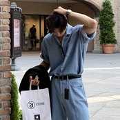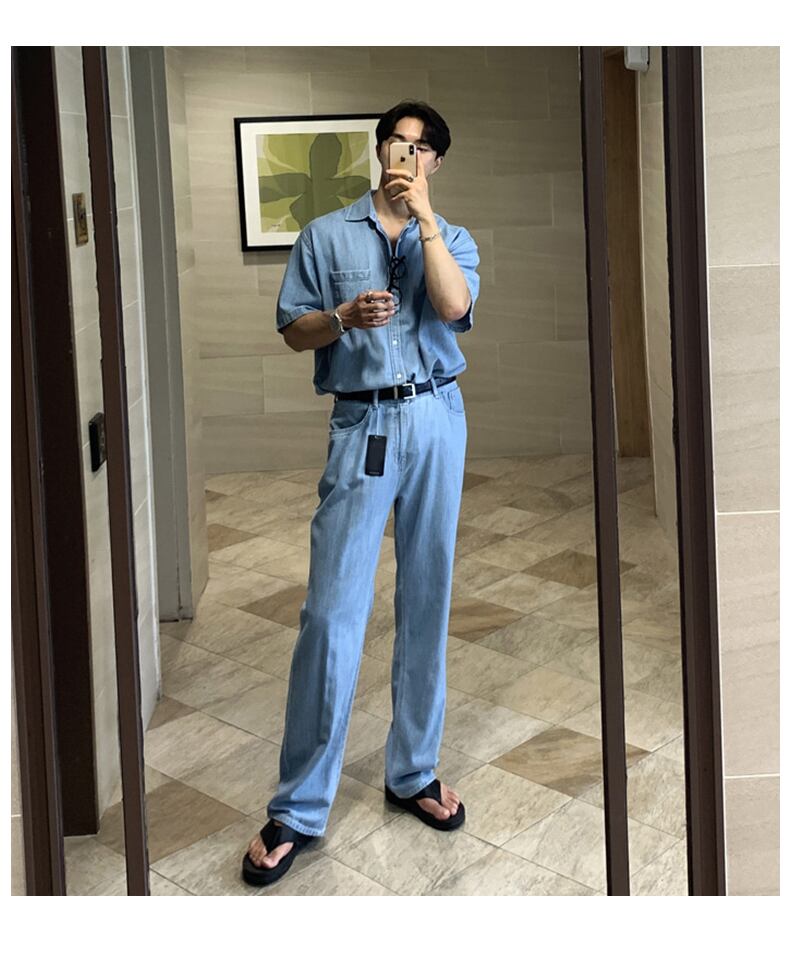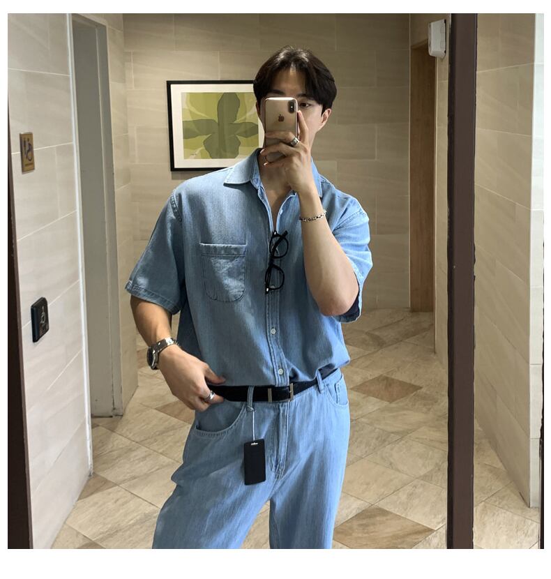 シャツ 半袖 メンズ 潮流 ブランド 香港風 中そで メンズ カジュアル ジャケット 夏 ハンサム ファッション オールマッチ デニムシャツ サマー 夏物 BLUU23403156048