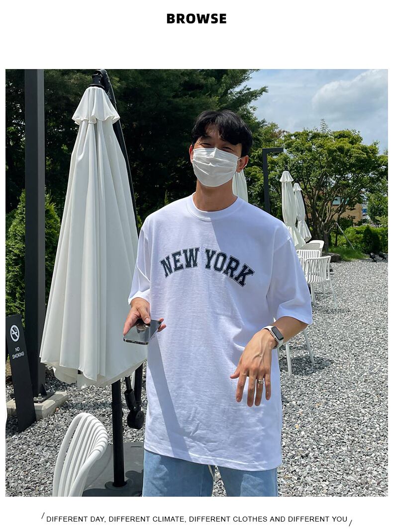 2022 夏新作半袖 tシャツメンズ人気 ins トレンディな ese カジュアル怠惰なシンプルワイルドプリントトップ サマー 夏物 BLUU16982587674