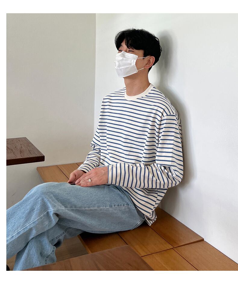 長袖 tシャツ i メンズ ins ese ニッチ デザイン センス オールマッチ ミニマリスト ストライプ トップス タイド ブランド カジュアル ボトムス シャツ ロング BLUU47562857325
