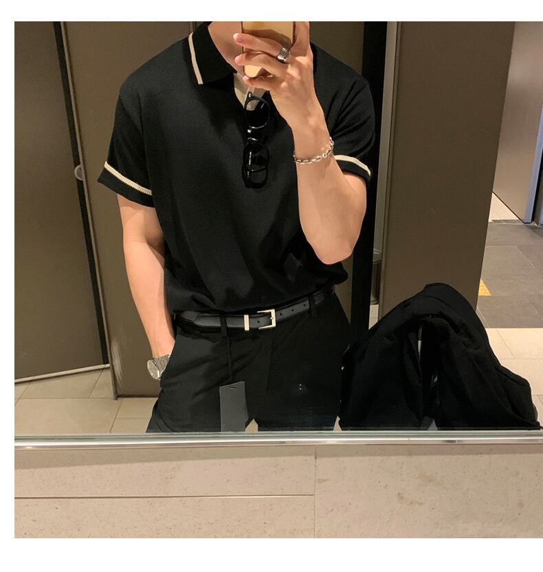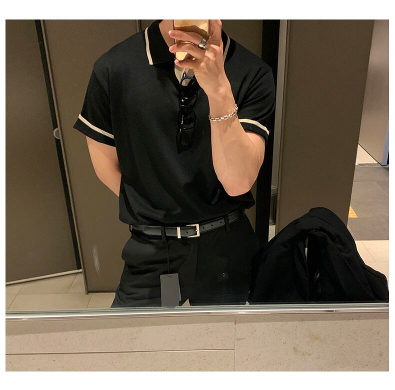 半袖ポロシャツ メンズ 夏 薄手 タイド ブランド 半袖 メンズ Tシャツ バージョン ニッチステッチ ニットラペルトップ サマー 夏物 BLUU90421393049