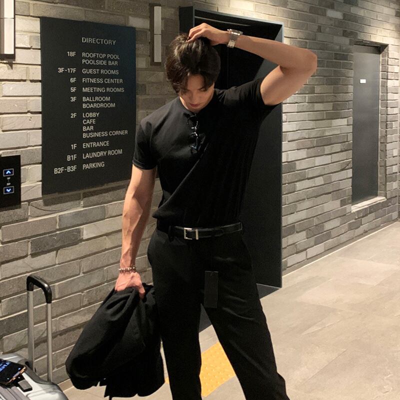 ネットレッドTシャツメンズインスーパーサマー香港スタイル半袖タイドブランド五点袖バージョンカジュアルワイルド無地トップ 夏物 ソリッドカラー BLUU27260753761