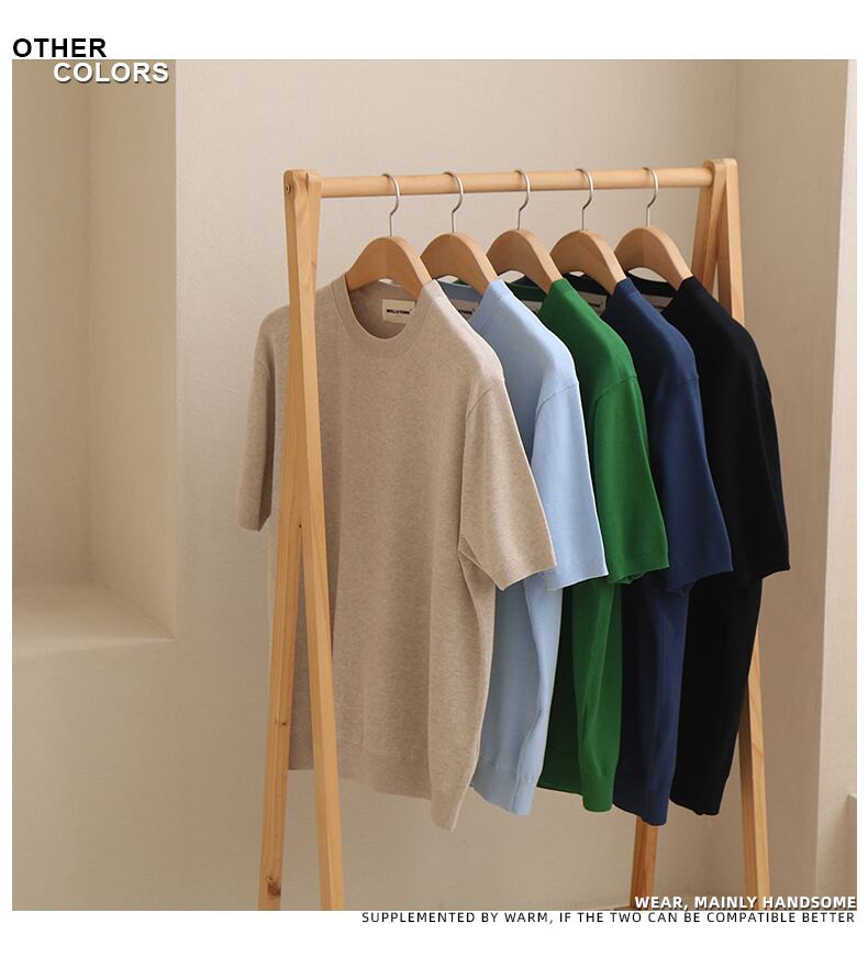 Tシャツ メンズ 半袖 イーゼ ルフィアン ハンサム トレンド ファッション 無地 オールマッチ ニットTシャツ 香港風 イン ルーズ オールマッチ トップス ソリッドカラー BLUU31381494949