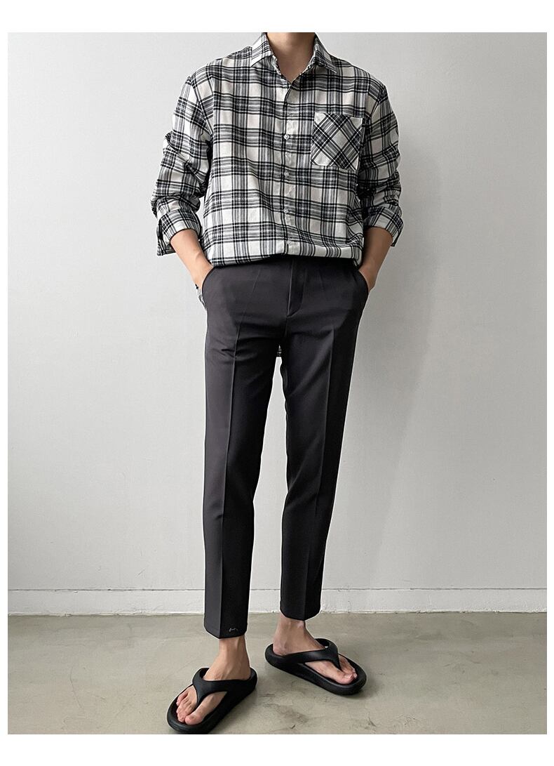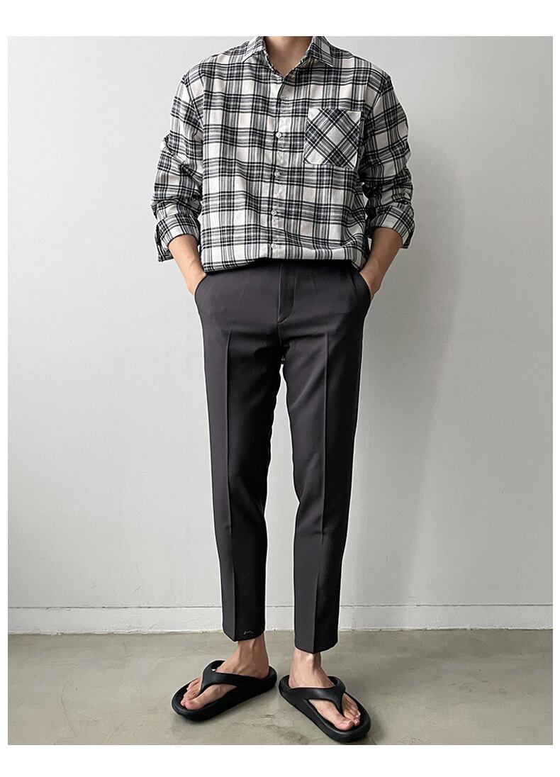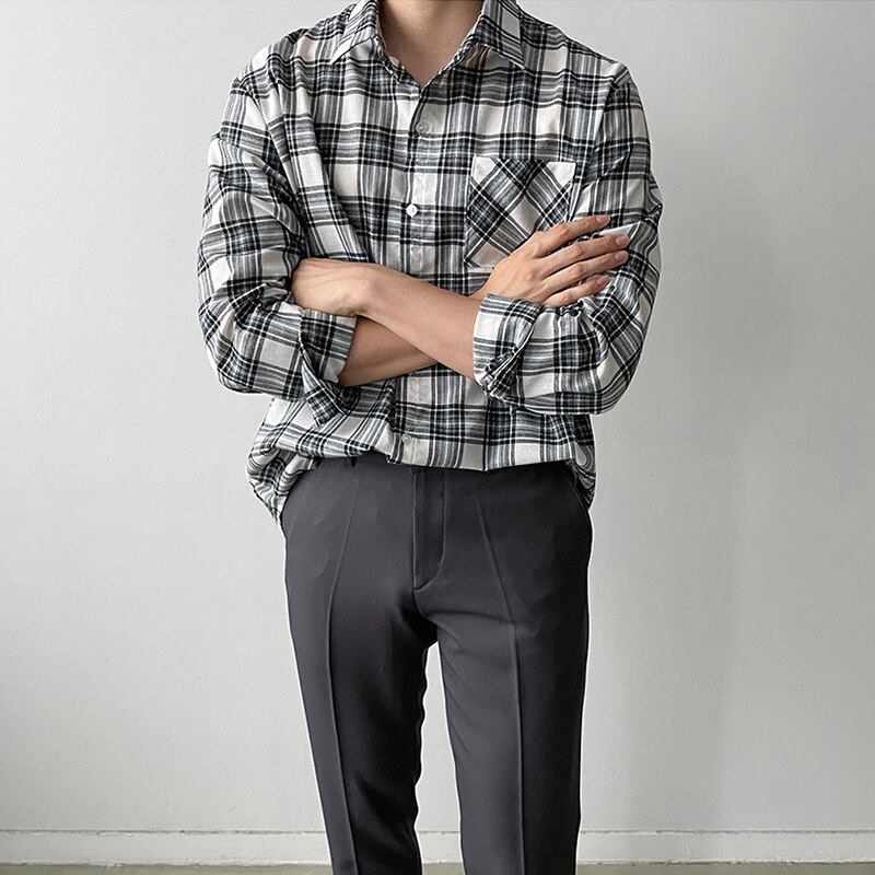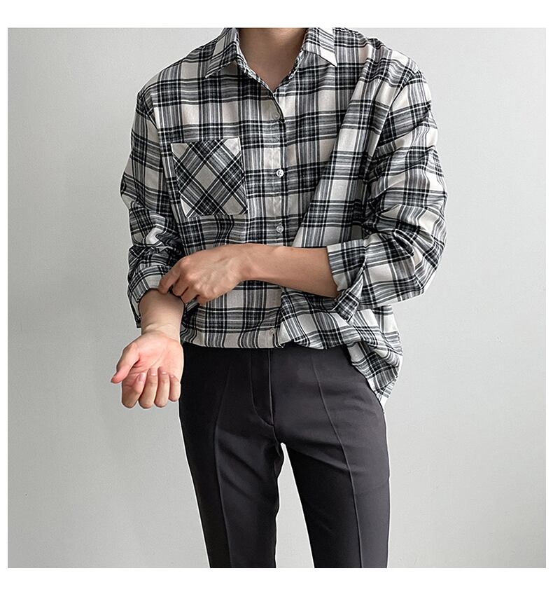 シャツ メンズ デザインセンス ニッチ ハイエンドセンス ルフィアン ハンサム インスタイド 長袖 夏 ゆったり 香港風 オールマッチ チェックシャツ ロング サマー 夏物 BLUU80870216002