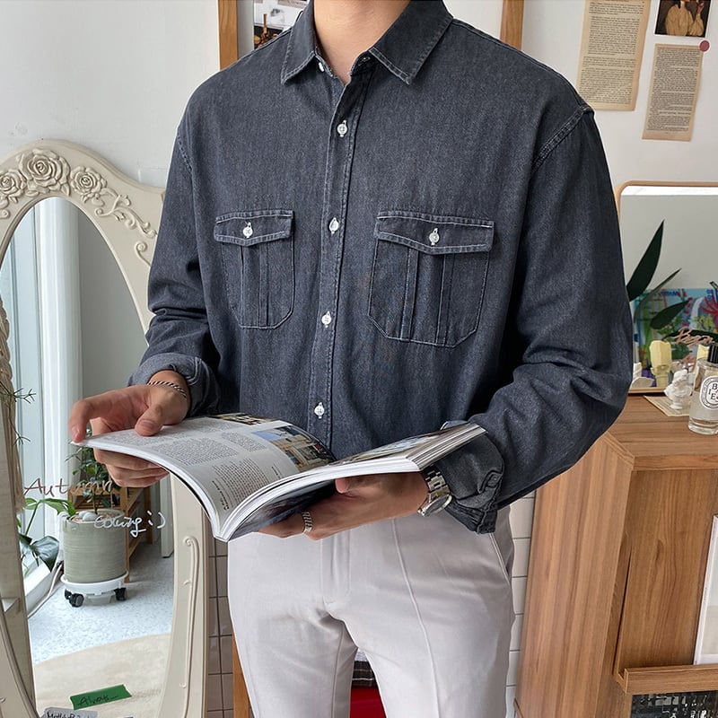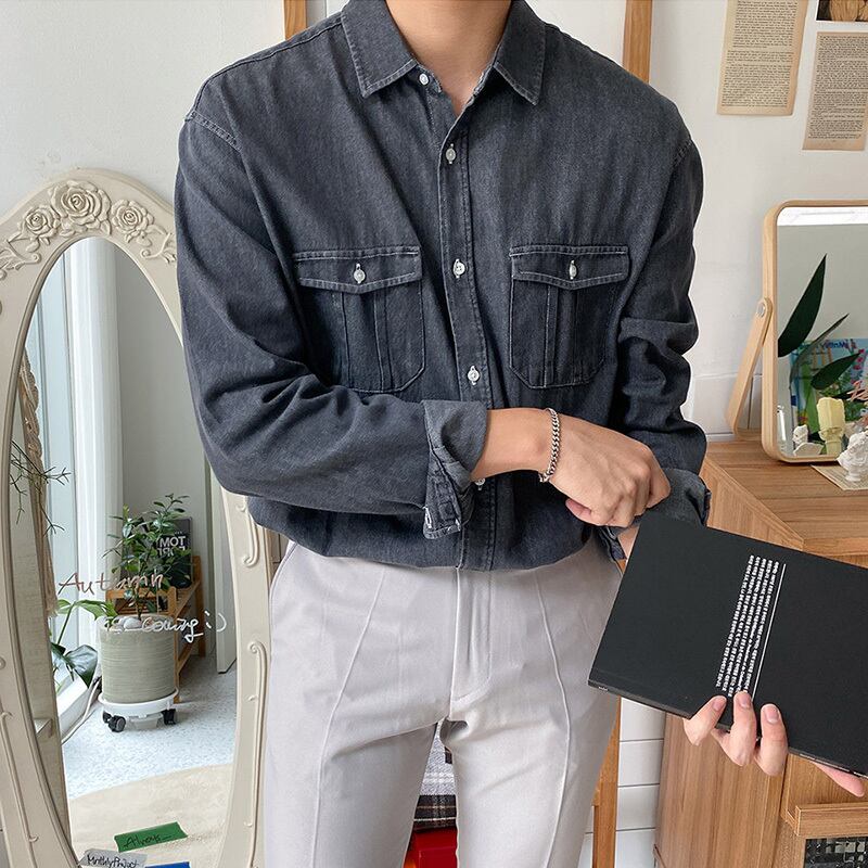 高品質のフライド ストリート シャツ メンズ トレンディ イン ハイ ストリート ルフィアン ハンサム オール マッチ ルーズ デニム シャツ ユース ファッション ジャケット BLUU20855162154