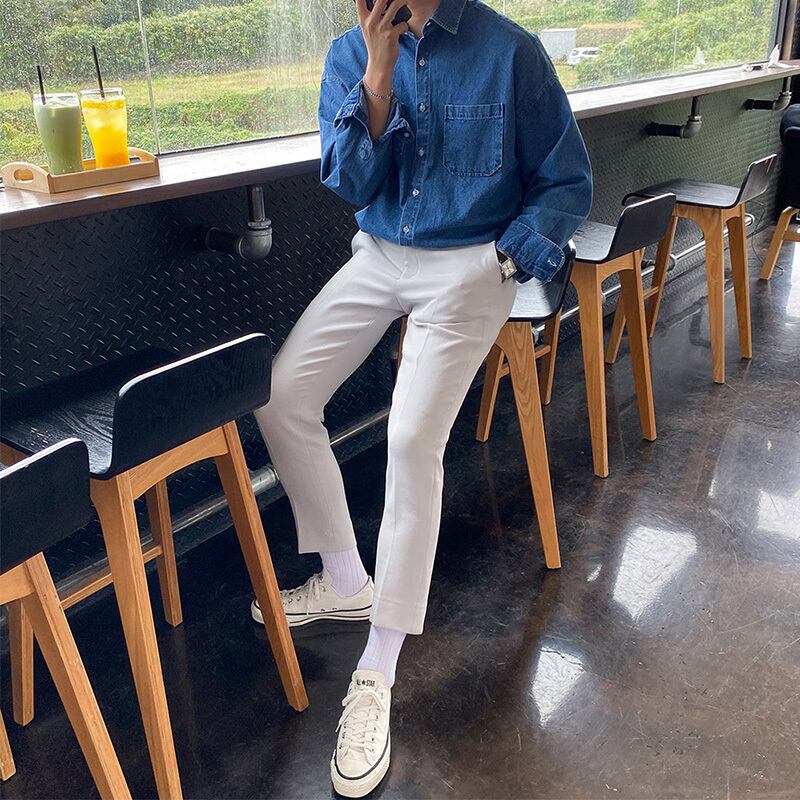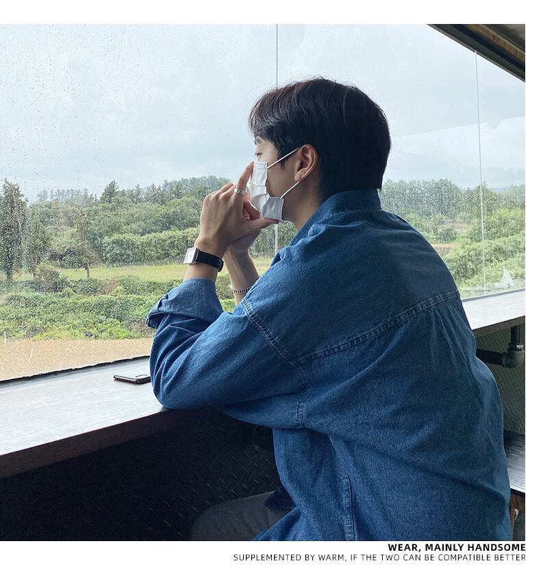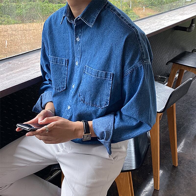 潮のブランドの乱暴なハンサムなフライド ストリート シャツ メンズ ハイエンド イン スーパー デニム シャツ春と秋のルーズ カジュアル ジャケット スプリング 春物 オータム 秋物 BLUU52719715068