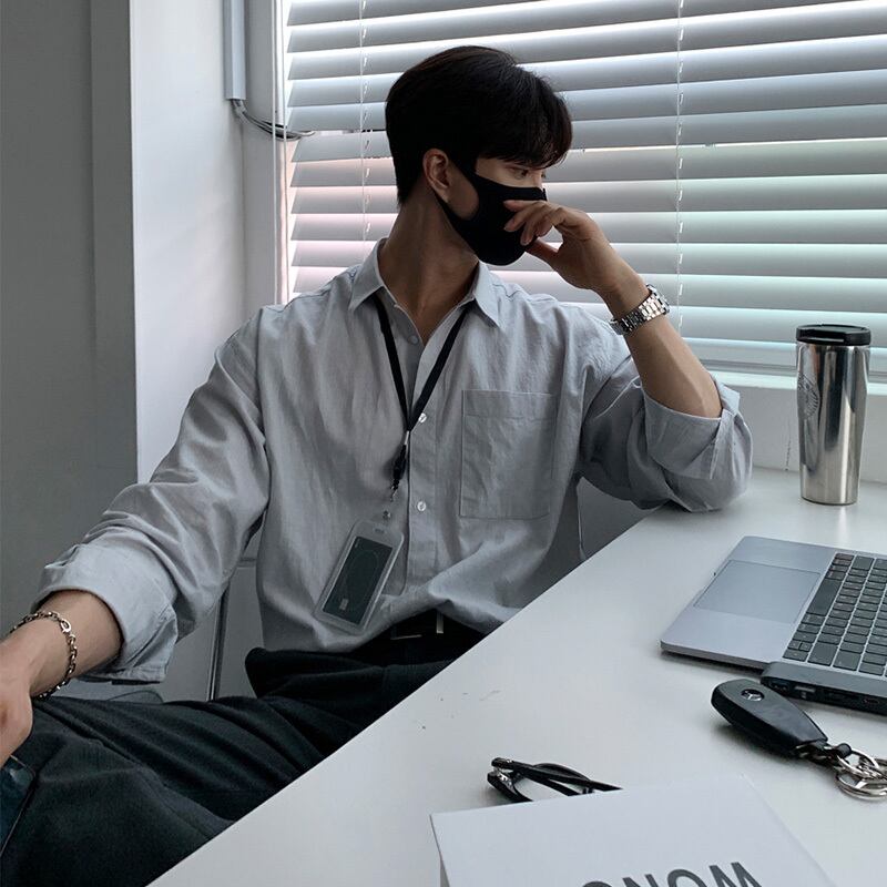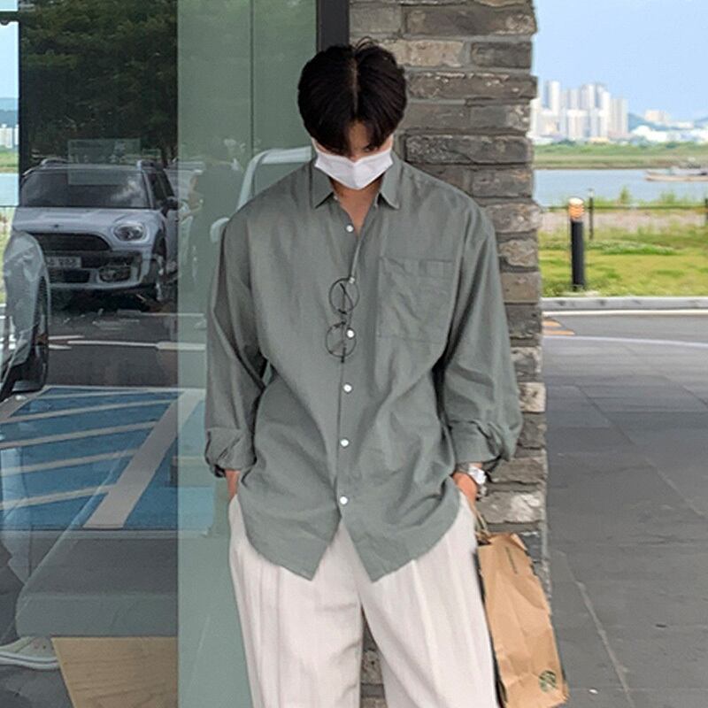 シャツ メンズ 長袖バージョン トレンド ハンサム カジュアル シャツ ユース オールマッチ 怠惰 イン シンプル ルーズシャツ ロング BLUU6673954621