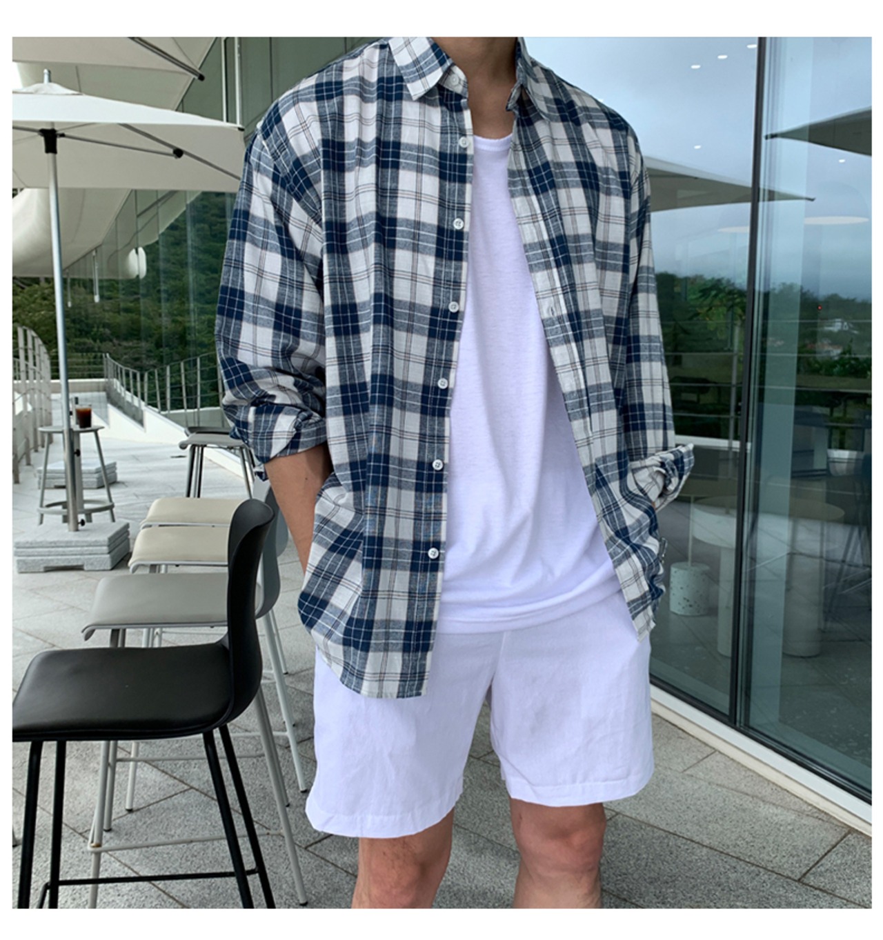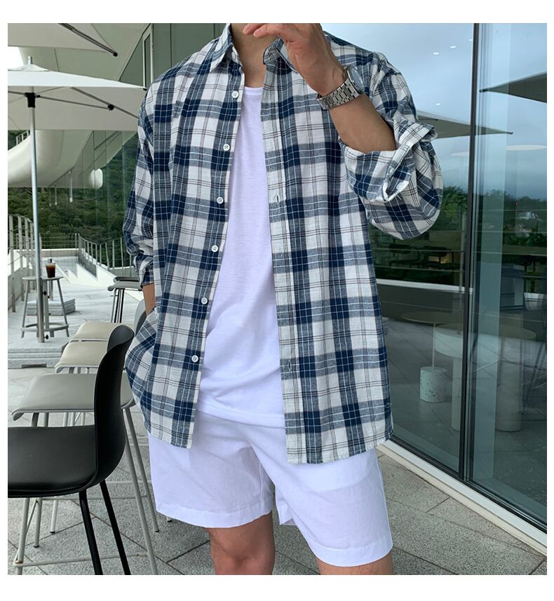 シャツ メンズ デザイン センス ニッチ ハイエンド センス シャツ チェック ジャケット メンズ ese and style スタイルウェア 長袖 ロング BLUU31128749891