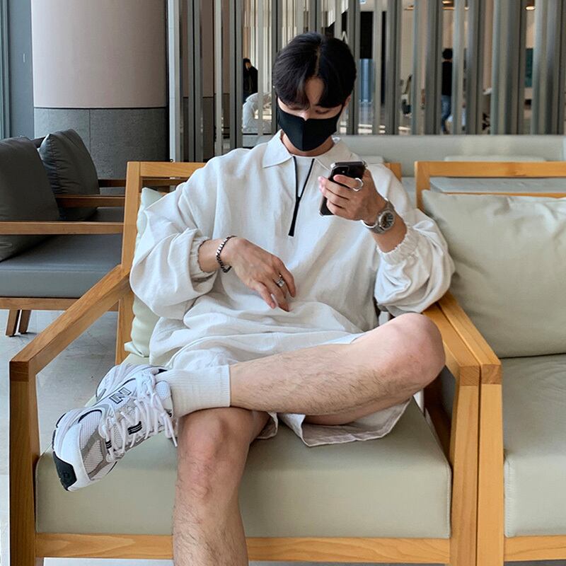 スーツ メンズ ハイエンド トレンディ スポーツウェア ツーピース バージョン イン ファッション セーター オールマッチ ルーズ ファイブポイント パンツ BLUU73412537037