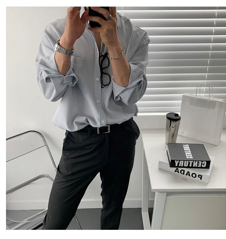 長袖シャツ メンズ 夏 薄手 ユース オールマッチ シンプル 無地 トップスバージョン トレンド ルーズシャツ ロング サマー 夏物 ソリッドカラー BLUU57853030573