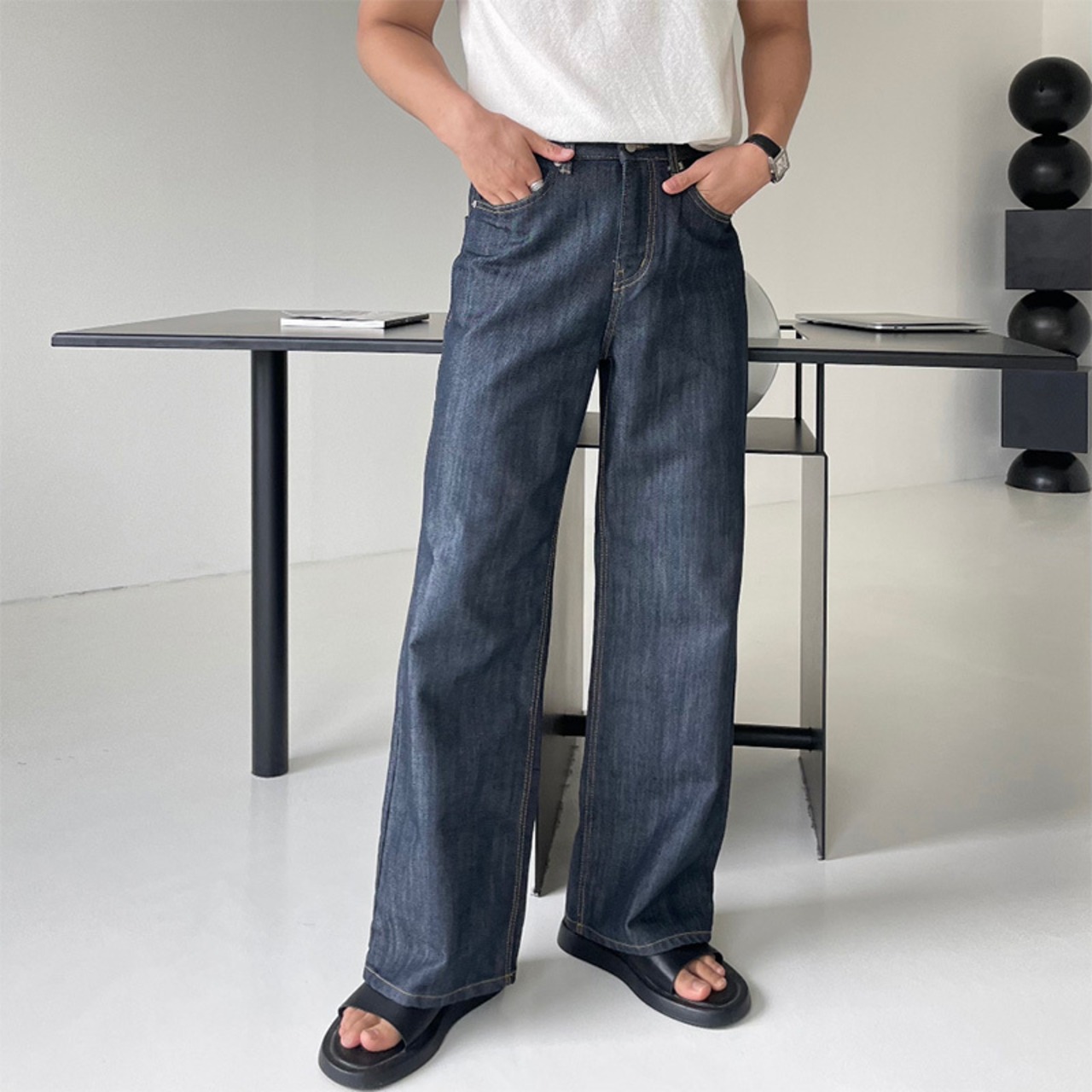 グレードのブラック ジーンズ メンズ夏薄いセクション カジュアル ルーズ ストレート パンツ香港スタイル イン レトロ ワイドレッグ パンツ サマー 夏物 BLUU75814552490