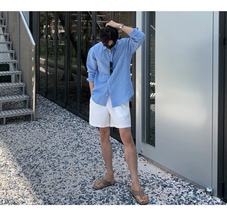 寒風メンズハイエンドファッションブランド乱暴なハンサムフライドストリートシャツメンズ香港スタイルイン長袖ルーズカジュアルシャツ ロング BLUU73557787363