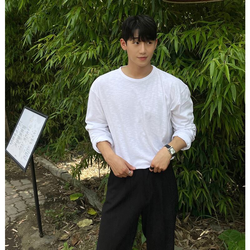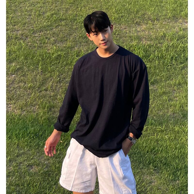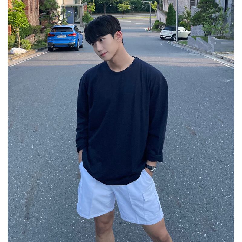 ロングTシャツ メンズ 長袖 トレンド ブランド シンプル 無地 ゆったり オールマッチ ラウンドネック トップス バージョン カジュアルファッション ボトムスシャツ Oネック ソリッドカラー BLUU81048874027