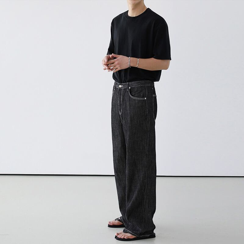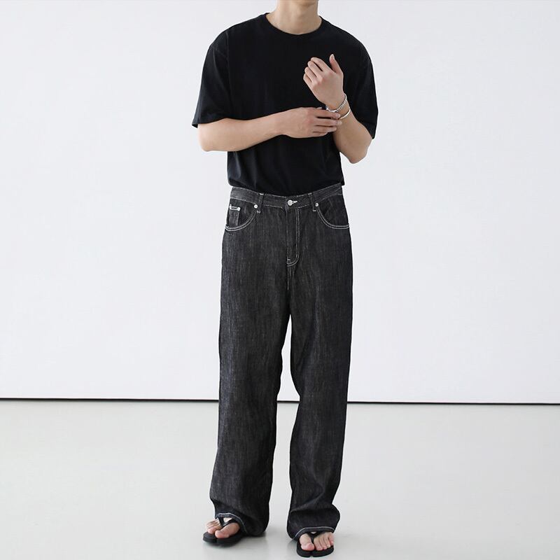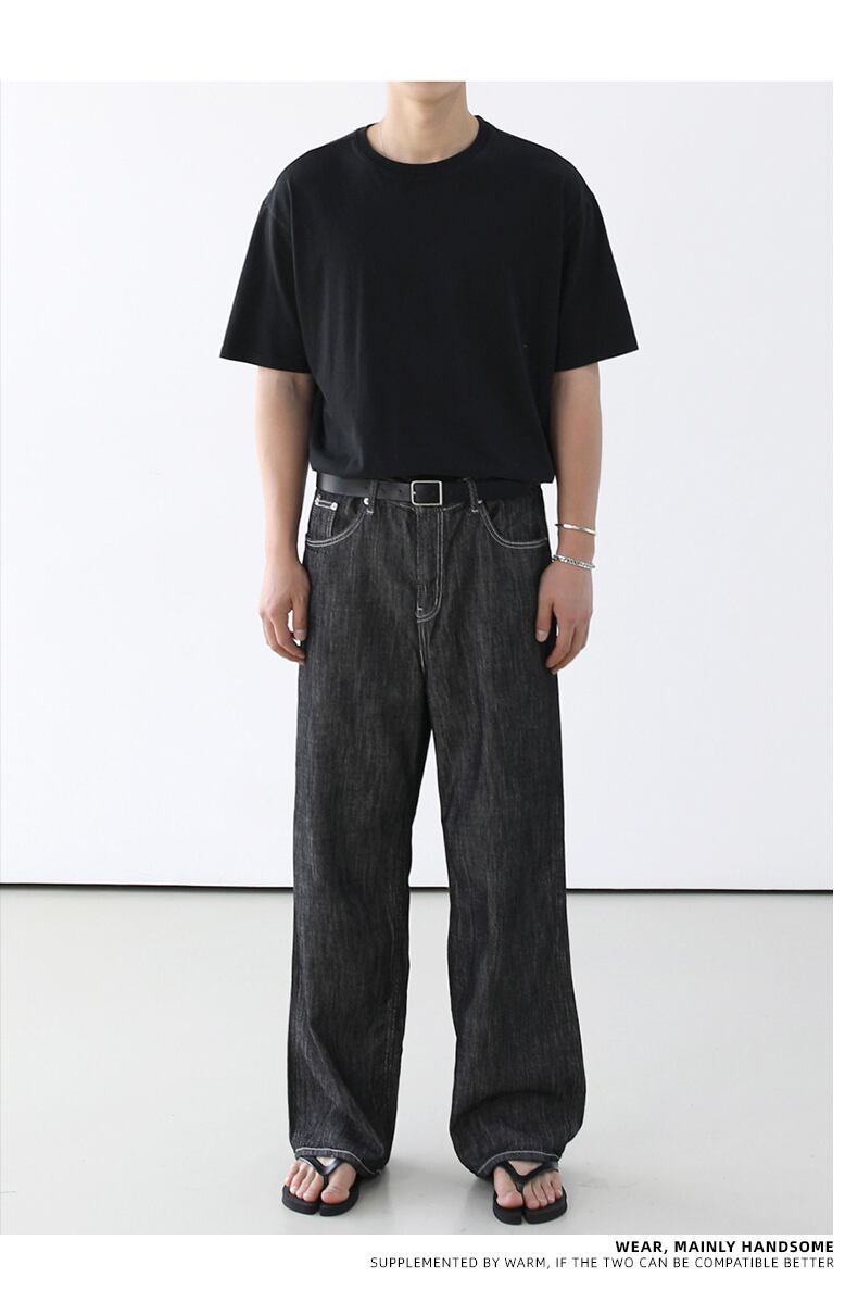 ルフィアンハンサムハイエンドジーンズメンズトレンド香港スタイルルーズワイドレッグパンツバージョンストレートカジュアルオールマッチハイストリートパンツ BLUU51088609589