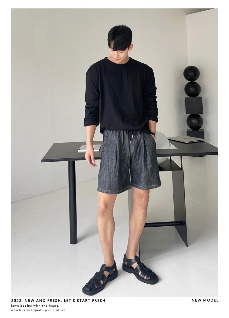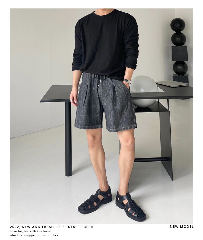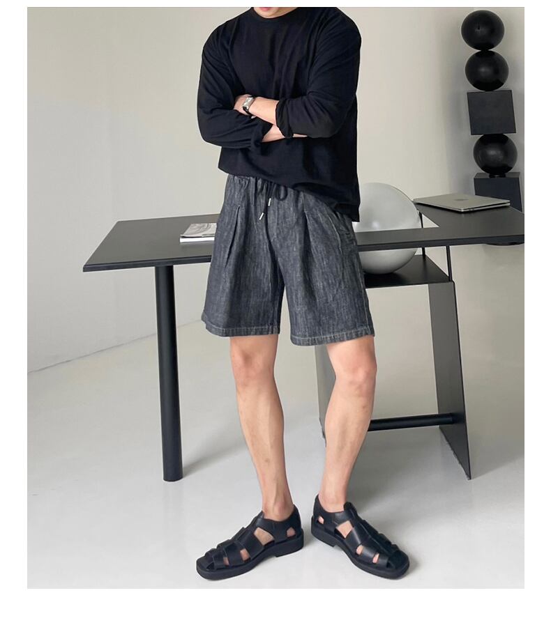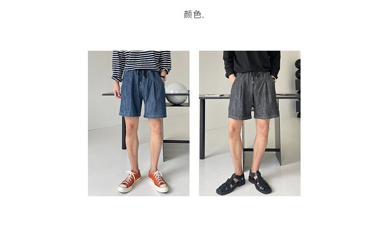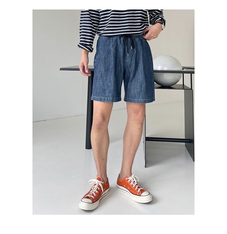 デニム ショートパンツ メンズ 夏 薄手 ゆったり ストレート ドローストリング 五点式 パンツ バージョン カジュアル オールマッチ タイド ブランド ハイストリート パンツ サマー 夏物 ショーツ ブルマー BLUU66150232541