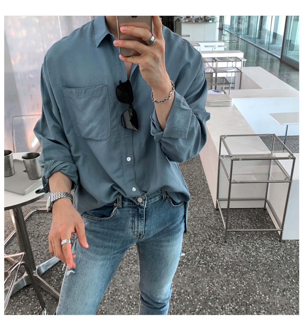 トップス 上質 秋 シャツ メンズ 長袖 ゆったり アイロン不要 メンズバージョン イン トレンド ルーズ ドレープ シャツ ロング オータム 秋物 BLUU43091968946