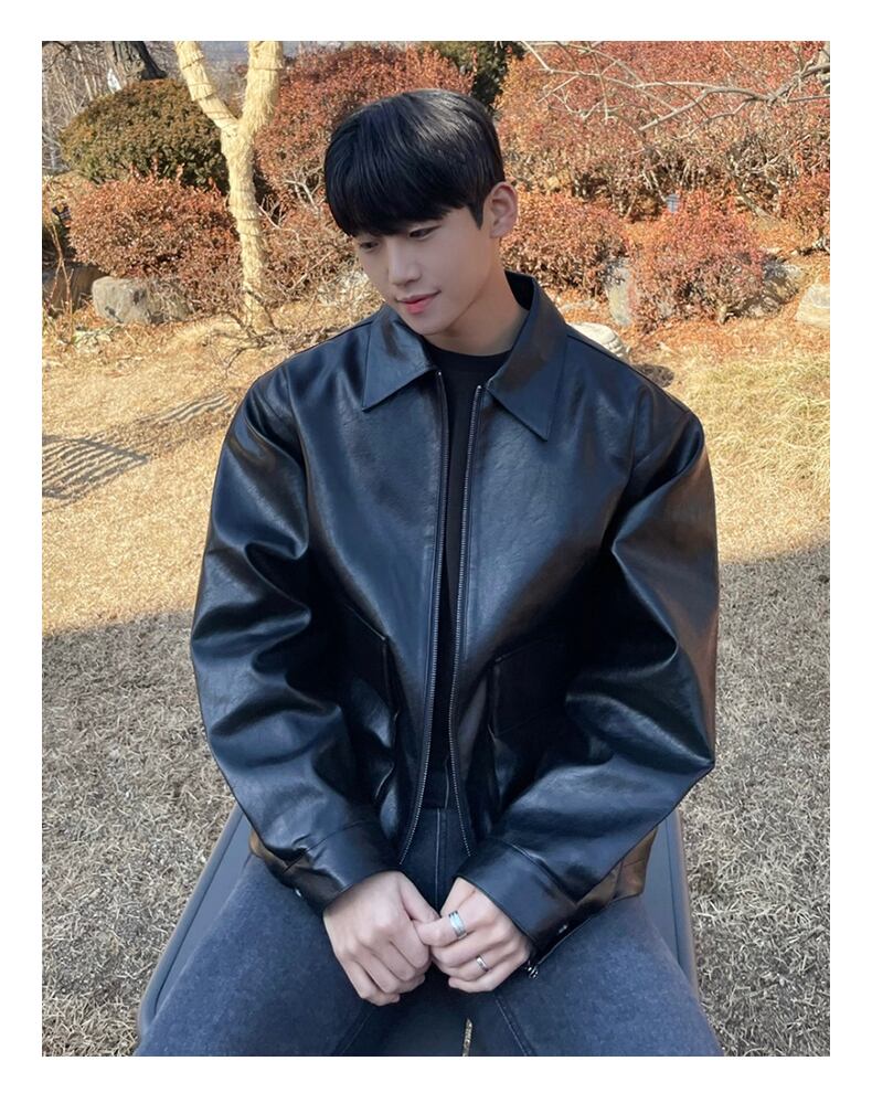 レザージャケット メンズ フライド アーケード バイク メンズ 秋冬 レザージャケット バージョン トレンド ハンサム ルフィアン ハンサム ルーズ ラペル トップ オータム 秋物 ウィンター 冬物 BLUU82779530836