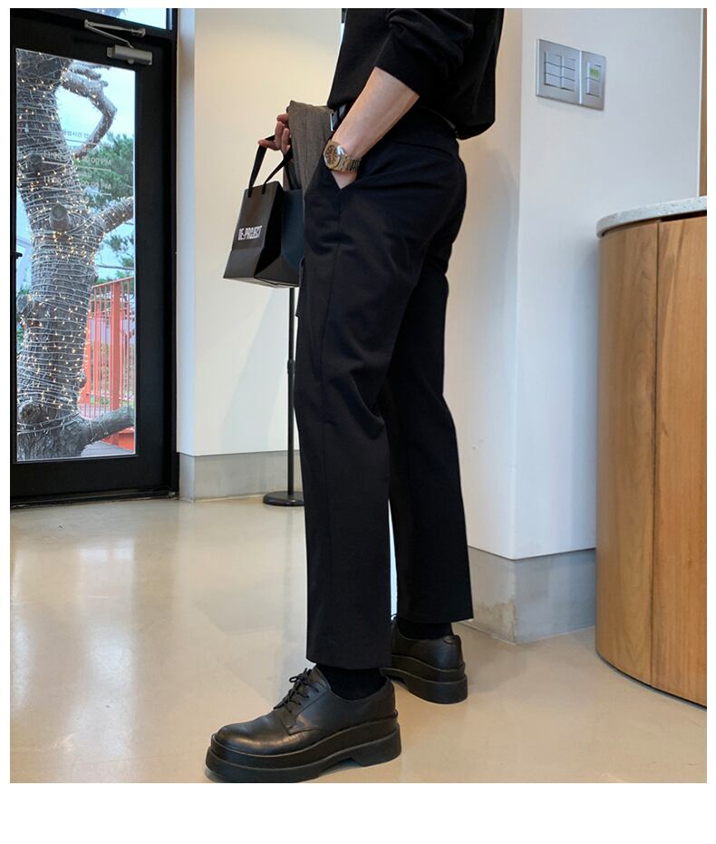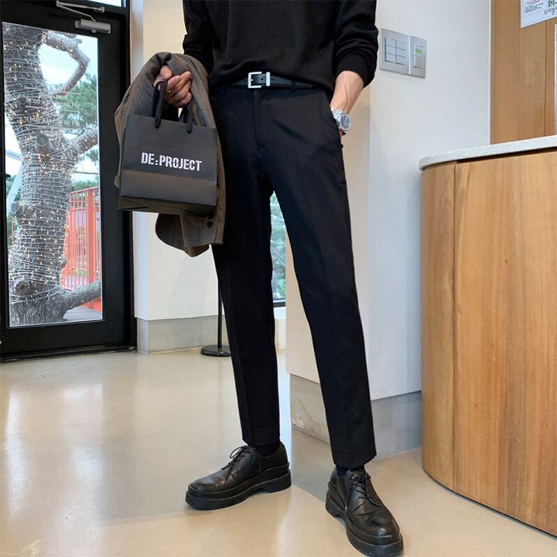 スリムフィット ノーアイロン ナインポイントパンツ メンズ 足が細く垂れ下がっている トレンドインファッションカジュアルパンツのオールマッチパンツバージョン BLUU83735278701