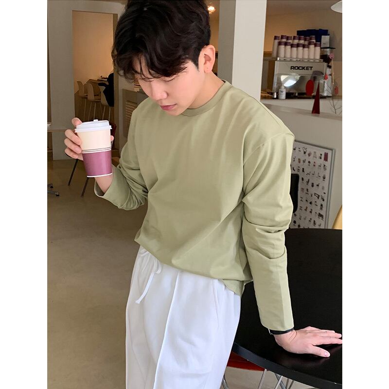 長袖 tシャツ 潮 ブランド メンズ ゆったり シンプル スタイル イン 秋 ファッション オールマッチ トップス バージョン カジュアル 無地 ボトムス シャツ ロング オータム 秋物 ソリッドカラー BLUU36158727858