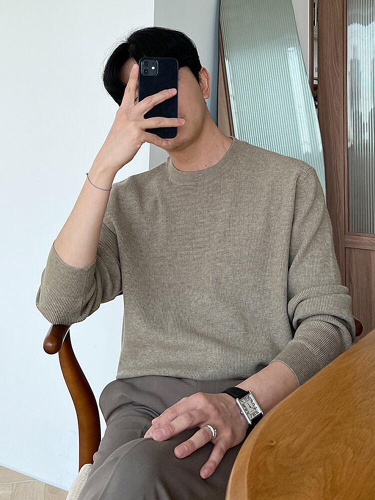 ラウンドネックプルオーバーセーターメンズ2022年新作カジュアルシンプル秋トレンドインゆったり薄手オールマッチニットセーター オータム 秋物 Oネック BLUU96436971861