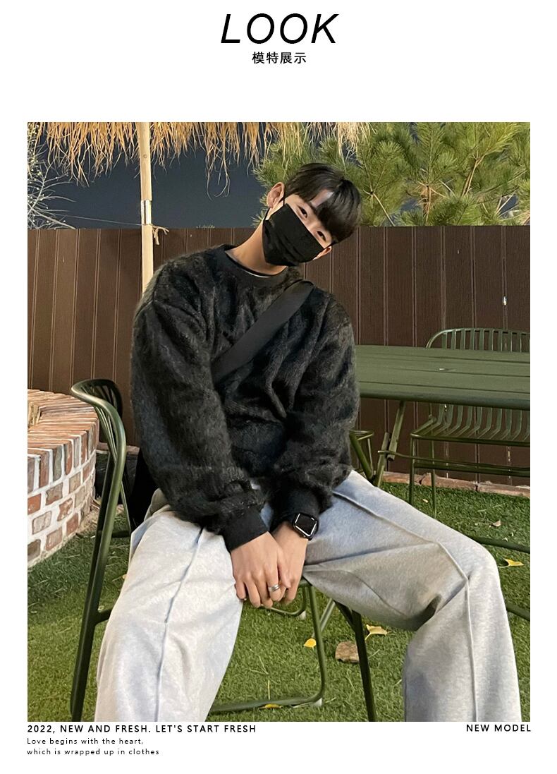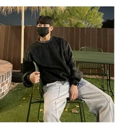 秋のセーターメンズトレンディなインタイドブランドラウンドネックトップハイエンド香港スタイルカジュアルファッション緩いレトロコート オータム 秋物 Oネック BLUU5981345437
