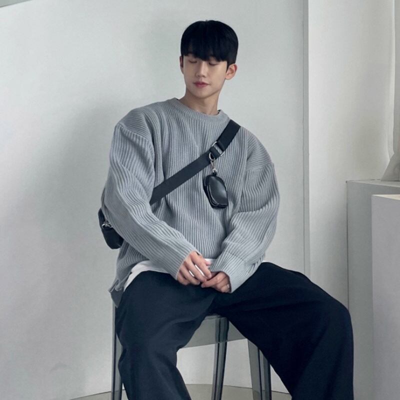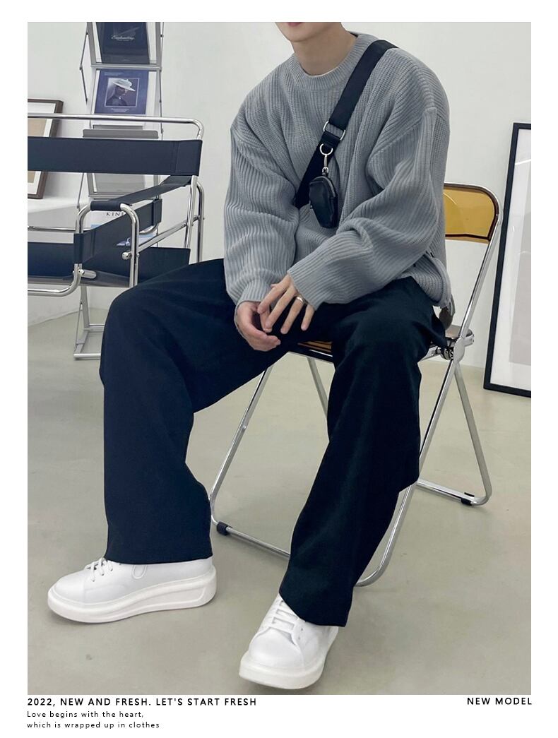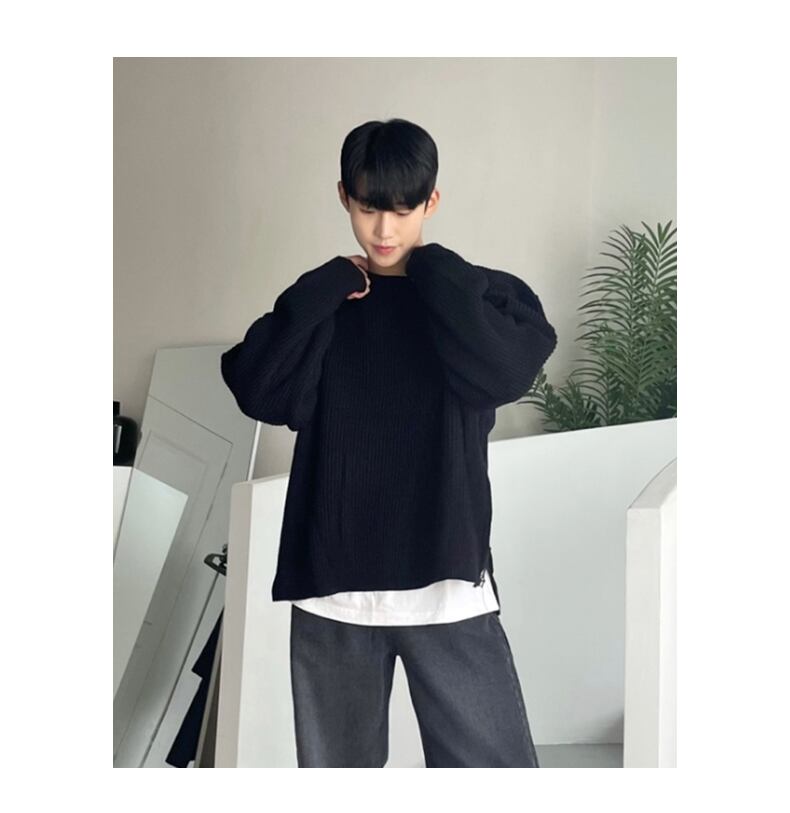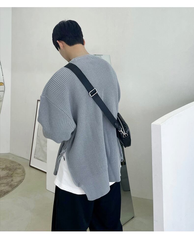 秋のセーターコートメンズタイドブランドファッションルーズスプリットトップバージョンカジュアルインオールマッチレイジーニットセーター オータム 秋物 BLUU32506873849