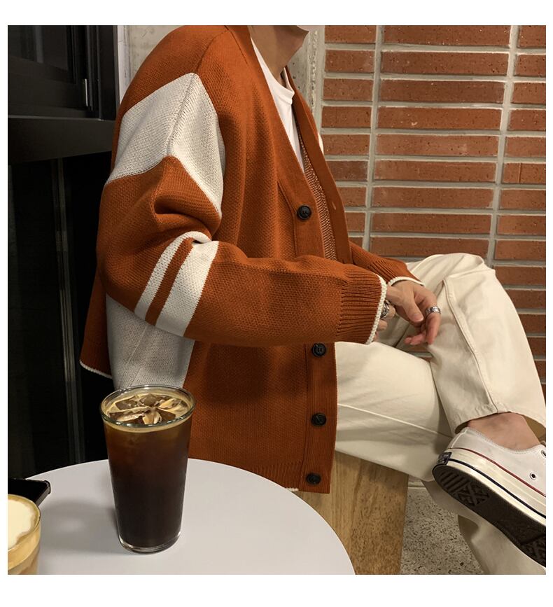 ニット カーディガン メンズ ルーズ バージョン カジュアル カラー コントラスト コート セーター 秋冬 ese レイジー ウィンド イン セーター オータム 秋物 ウィンター 冬物 BLUU21651257803