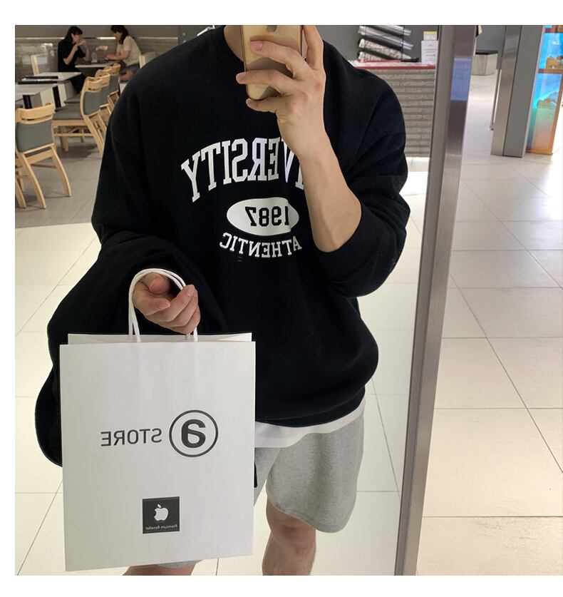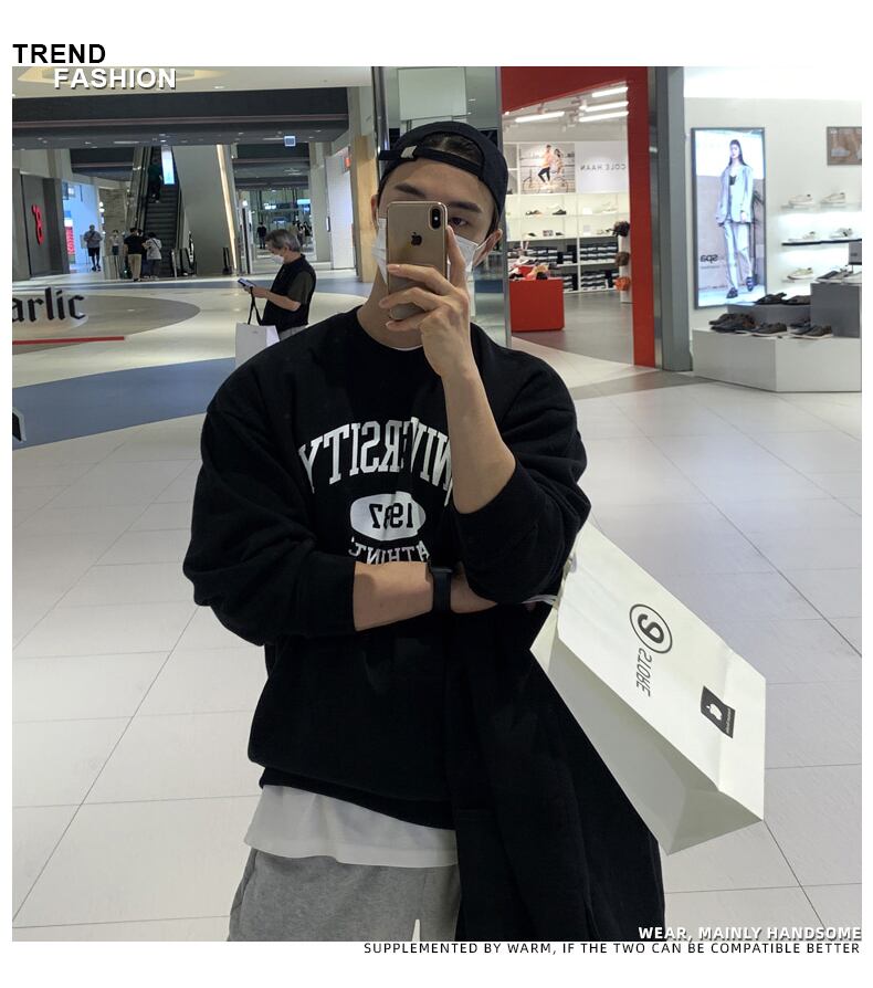 秋のラウンドネックセーターメンズカレッジスタイルジャケットバージョントレンドカジュアルファッションルーズオールマッチレタープリントトップ オータム 秋物 Oネック BLUU79706331289
