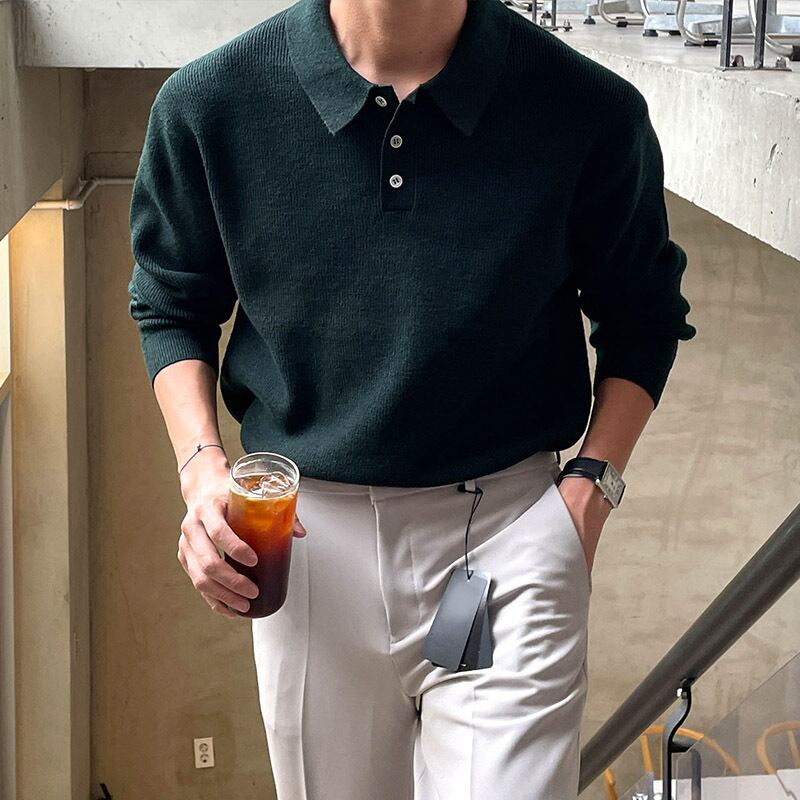 ラペルセーター ジャケット メンズ インズ ゆったり 万能 ポロシャツ 秋 無地 センス ニット セーター オータム 秋物 ソリッドカラー BLUU53900091482