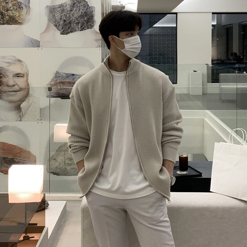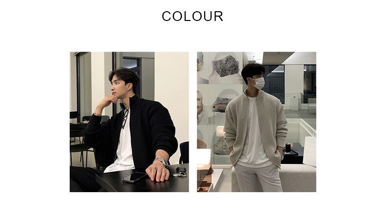 秋潮ブランドニットカーディガンメンズルーズジャケットese怠惰なスタイルインカジュアルファッションオールマッチスタンドカラーセーター オータム 秋物 BLUU16860805321