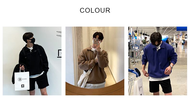 秋ラウンドネックセーターメンズカレッジ風ジャケットeseカジュアルルーズポロシャツシンプル無地トップス オータム 秋物 Oネック ソリッドカラー BLUU35095789759