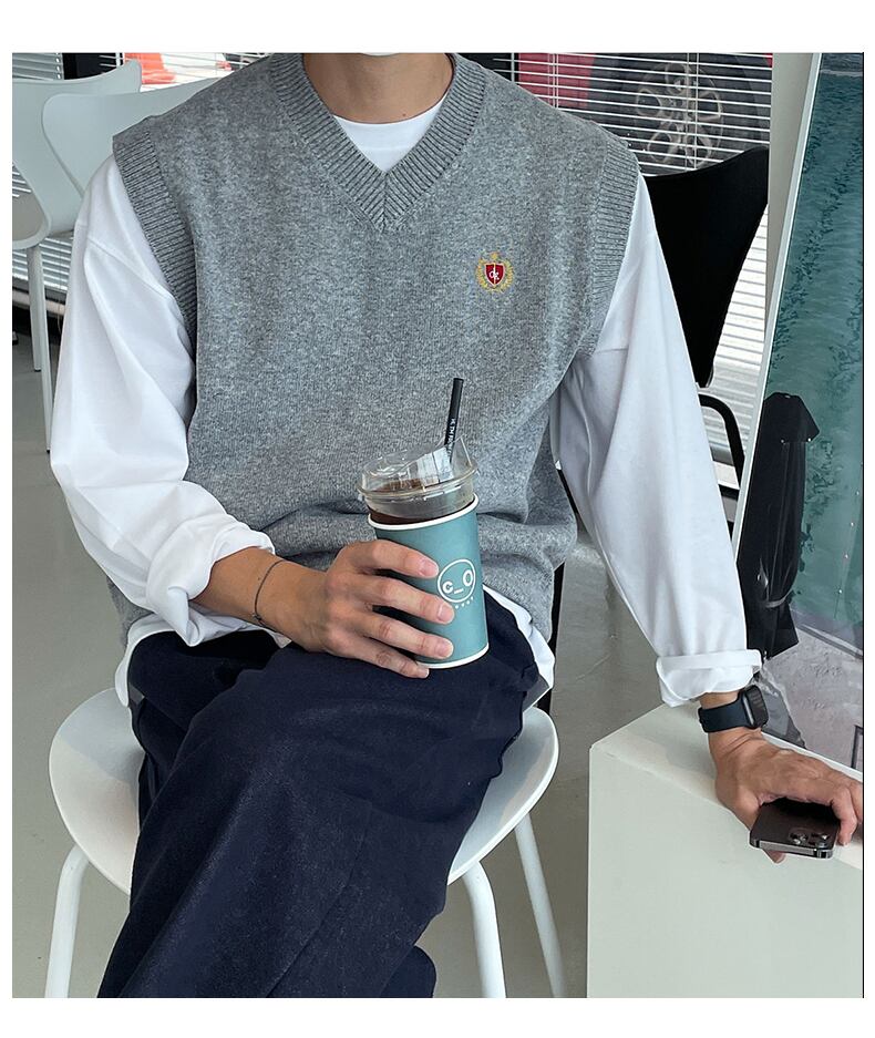 メンズウィンターセーターベストバージョンタイドブランドオールマッチカジュアルインサイドイン怠惰風eseベストニットセーター 冬物 BLUU97891766342