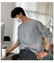 ラウンドネック セーター ジャケット メンズ 秋 ゆったり オールマッチ 無地 ニット セーター ese 怠惰 カジュアル ファッション シンプル セーター オータム 秋物 Oネック ソリッドカラー BLUU25447293184