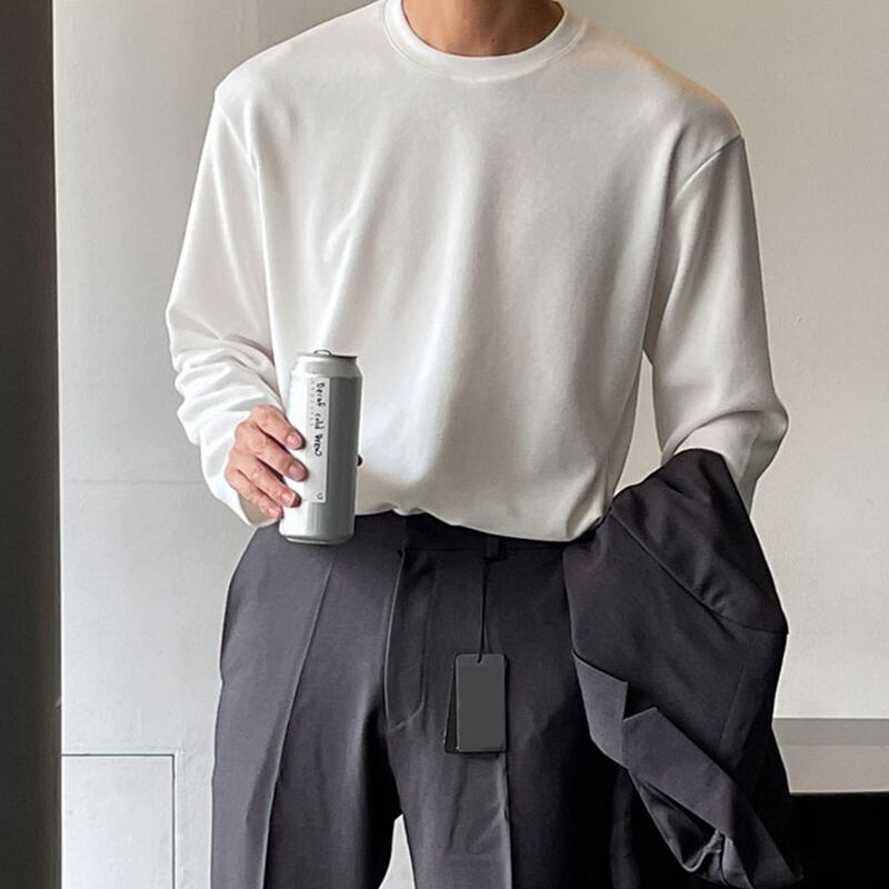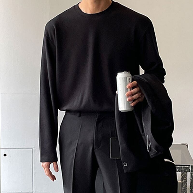 長袖 tシャツ 潮 ブランド メンズ ese カジュアル ファッション ワイルド ラウンドネック トップス 秋 シンプル 無地 ゆったり ボトムス シャツ ロング オータム 秋物 Oネック ソリッドカラー BLUU63323788845
