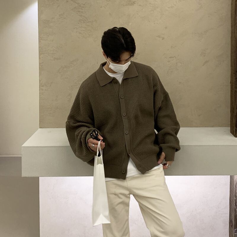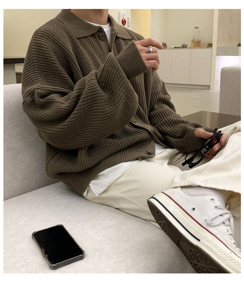 潮ブランド怠惰な風ニット カーディガン セーター ジャケット メンズ秋冬 ese ins レトロ ワイルド ラペル セーター オータム 秋物 ウィンター 冬物 BLUU47416574943