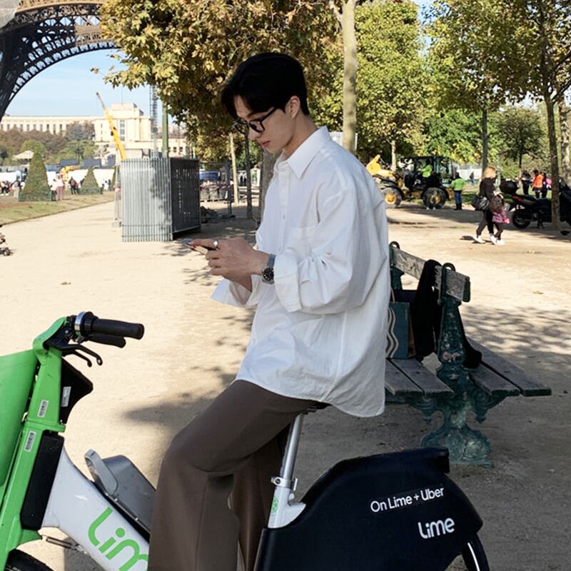 シャツ ジャケット メンズ 秋 カジュアル ヤッピー ハイエンド ファッション オールマッチ シャツ バージョン シンプル 無地 ゆったり 長袖 ロング オータム 秋物 ソリッドカラー BLUU3573678989