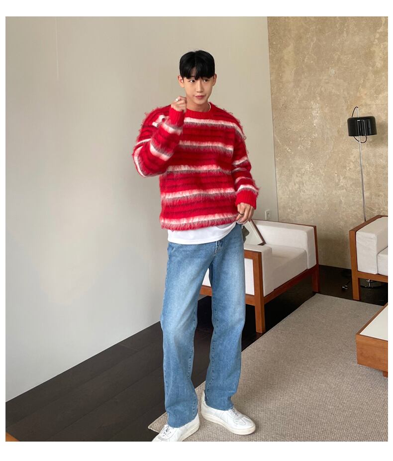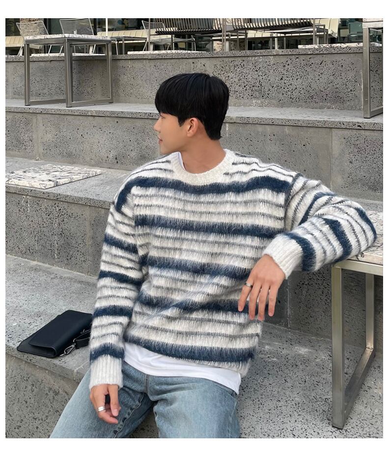 -end 超かっこいいセーターメンズニッチデザインストライプセーター秋冬バージョンカジュアルルーズコート オータム 秋物 ウィンター 冬物 BLUU67362485779