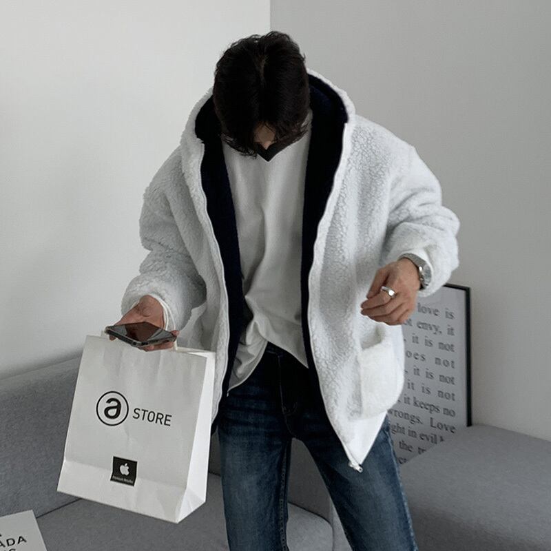 冬のフード付きイミテーションラムウールコートメンズタイドブランドプラスベルベット厚手コットンコートバージョントレンドハンサム香港スタイルコットンコート ウィンター 冬物 BLUU77438166080