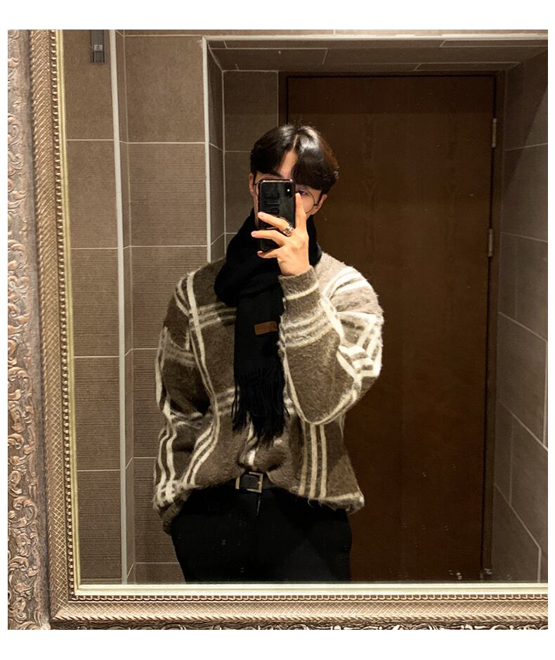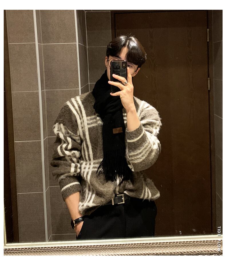 セーターメンズ冬増厚ニッチデザインセンス香港スタイルレトロカジュアルチェック柄ニットセーターinsタイドブランドコート ウィンター 冬物 BLUU18903170811