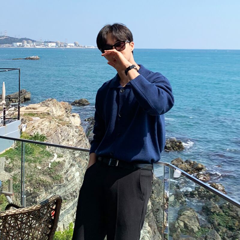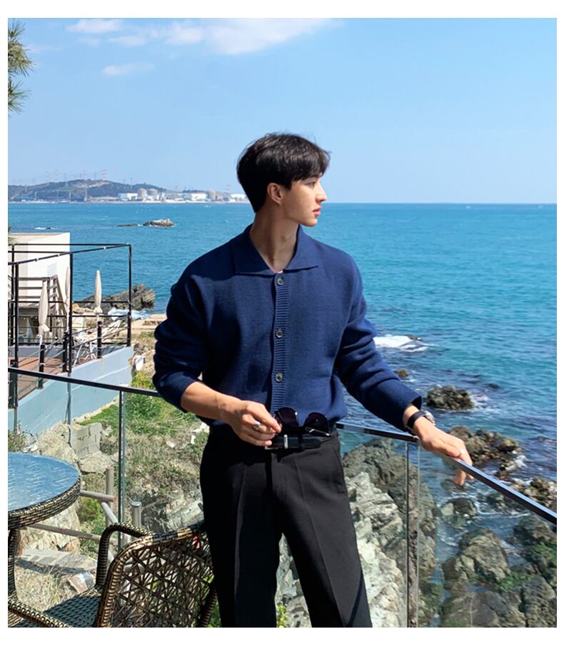潮ブランド怠惰なスタイルニットカーディガンセータージャケットメンズ秋バージョンカジュアルファッションルーズポロシャツトップ オータム 秋物 BLUU81707996545