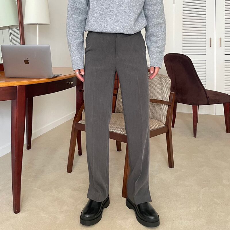 パンツ タイド ブランド メンズ ハイエンド ドレープ感 トラウザーズ ニッチなデザイン スリット感 トラウザーズ バージョン ストレート ルーズ カジュアル パンツ BLUU45874142325